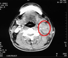 病例1 女,49歲。胃體癌晚期,胃竇增厚強(qiáng)化,與周圍粘連,腹膜增厚,腹腔廣泛轉(zhuǎn)移,伴大量腹水。放/化療失敗,無法手術(shù)。治療方案:腹腔灌注今又生2×1012VP/2次/周,共12周,同時灌注順鉑和5-氟尿嘧啶腹腔,后4…今又生治療病例---頭頸部腫瘤