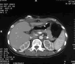 2a 治療前 主動(dòng)脈前方,胃底和脾門(mén)之間見(jiàn)大量結(jié)節(jié)狀淋巴結(jié)