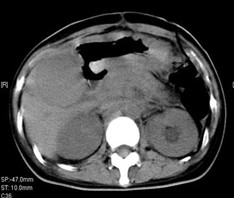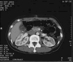 女,49歲。胃體癌晚期,胃竇增厚強(qiáng)化,與周?chē)尺B,腹膜增厚,腹腔廣泛轉(zhuǎn)移,伴大量腹水。放/化療失敗,無(wú)法手術(shù)。治療方案:腹腔灌注今又生2×1012VP/2次/周,共12周,同時(shí)灌注順鉑和5-氟尿嘧啶腹腔,后4周加8次全腹熱療。治療后:第3周,腹水消失;第8周,胃竇、腹膜和網(wǎng)膜變薄,盆腔結(jié)節(jié)明顯變小。后行手術(shù)切除殘余胃腫瘤,術(shù)中探查全腹和盆腔未捫及腫瘤。術(shù)后病檢胃腫瘤內(nèi)未見(jiàn)癌細(xì)胞。